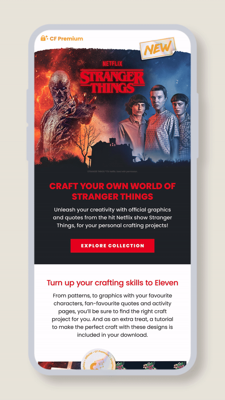 As the launch went live we worked with influencers, created a Youtube Live event with an audience favorite and continued to remind our subscribers of the new launch with email campaigns. All with the Stranger things look bespoke graphics and elements.